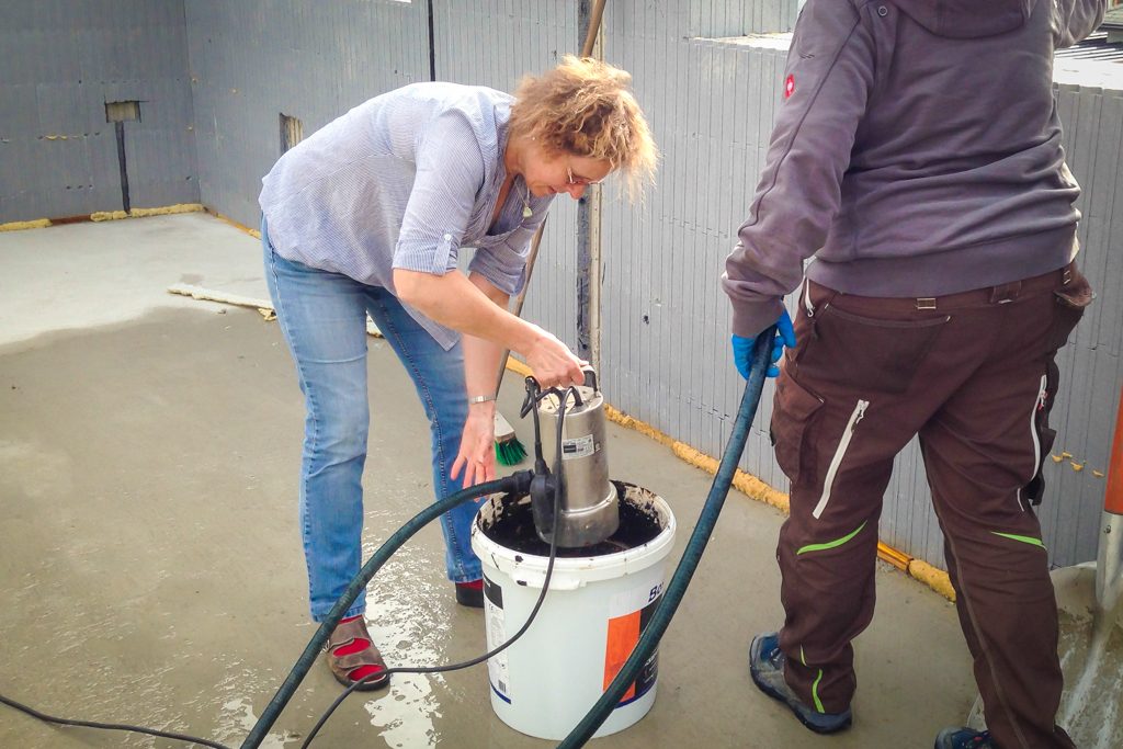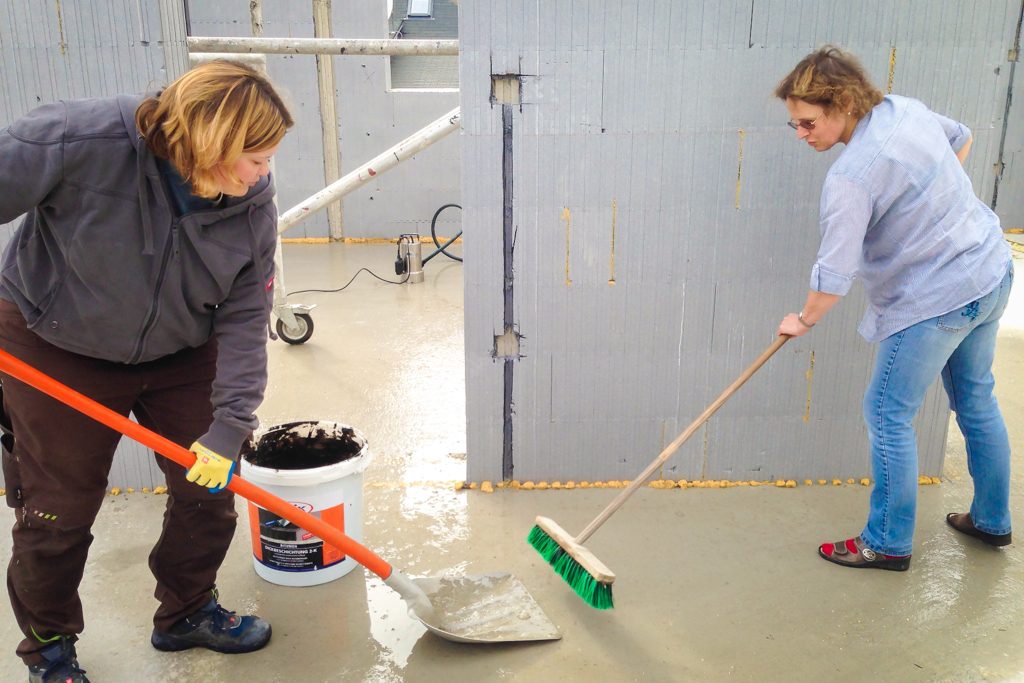 Wasser Gepostet von Bernhard | Mai 2, 2015 | Hausbau | 0 | Nachdem es die letzten Tage immer wieder geregnet hat, war natürlich reichlich Wasser im Haus. Ingrid und Conny haben es mit Besen und Schaufel entfernt.